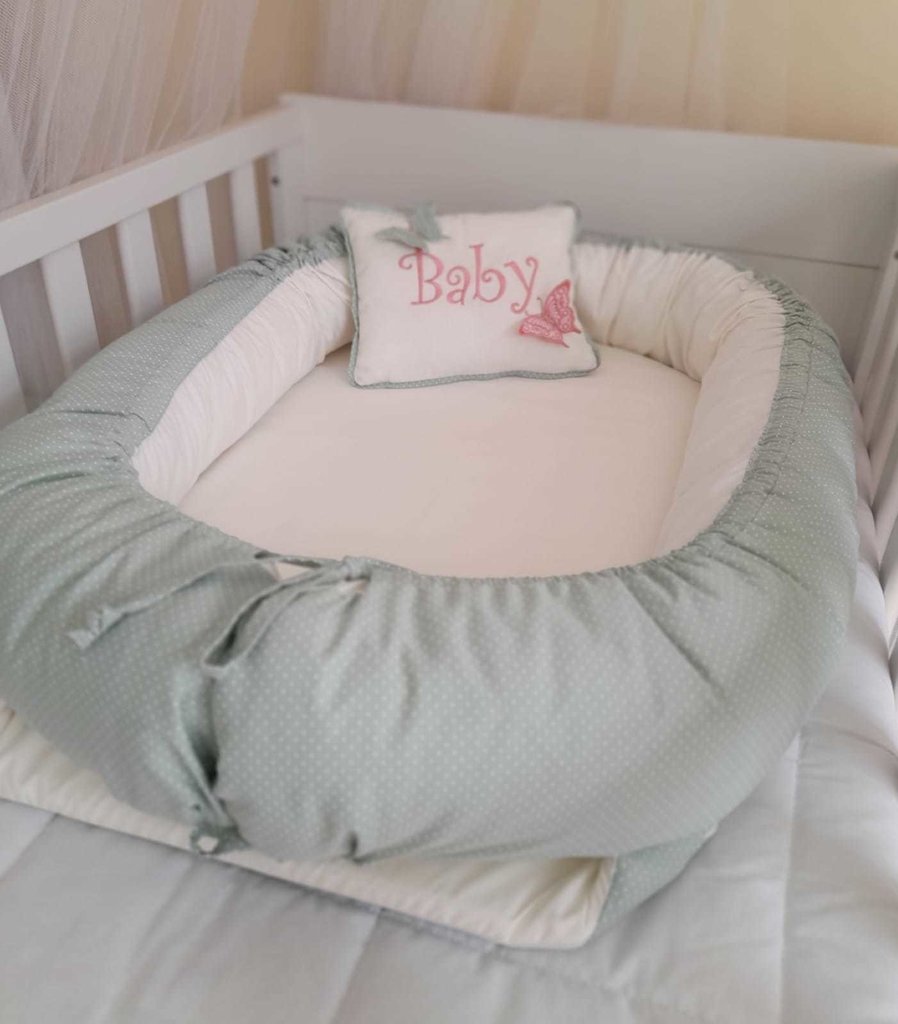A principal função é ser um redutor de berço, já que o recém-nascido pode se sentir pouco à vontade no berço, especialmente nos primeiros meses. O ninho vai complementar o kit berço, proporcionando maior relaxamento para o bebê. A família também pode levar o ninho para a cama, sofá e nos passeios na casa da vovó. Contem 04 peças: 01 capa de ninho, 01 almofadinha, 01 enchimento da lateral e 01 espuma (colchãozinho). Seu acabamento possui zíper a volta toda, para facilitar a lavagem. Confeccionado com tecido 100% algodão 200 fios.